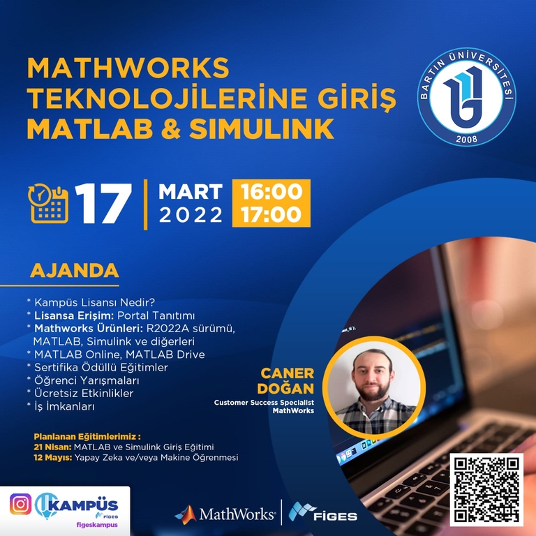 Aşağıda açıklamaları yer alan ve 17 Mart 2022 günü gerçekleştirilecek olan Matlab ve Simulink eğitimine tüm öğrencilerimizin, özellikle bu dönem aldıkları derslerde bu yazılımı kullanacak olanların katılması beklenmektedir.