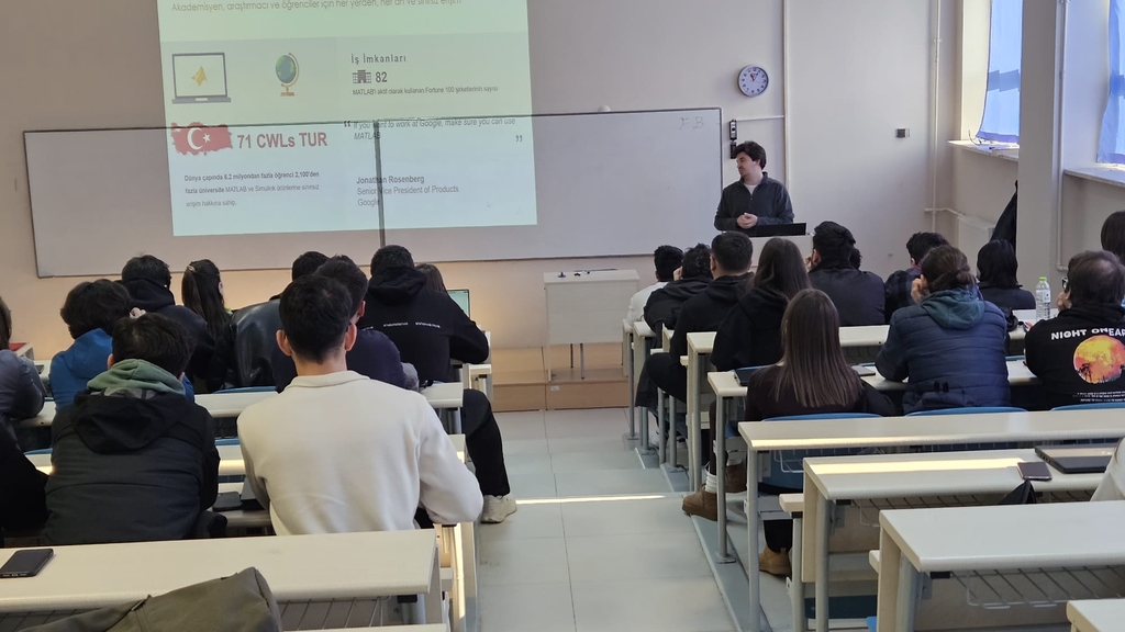 Etkinliğin sabah oturumu, Müşteri Başarı Mühendisi Silvan Schwaller tarafından gerçekleştirildi. “Temel Lisans İçerikleri ve Temel MATLAB” başlıklı eğitimde, MATLAB Kampüs Lisansı kapsamındaki araçlar tanıtıldı. Katılımcılar değişken tanımlama, matris işlemleri, karar yapıları ve döngüler gibi temel programlama konularında uygulamalı bilgiler edindi.