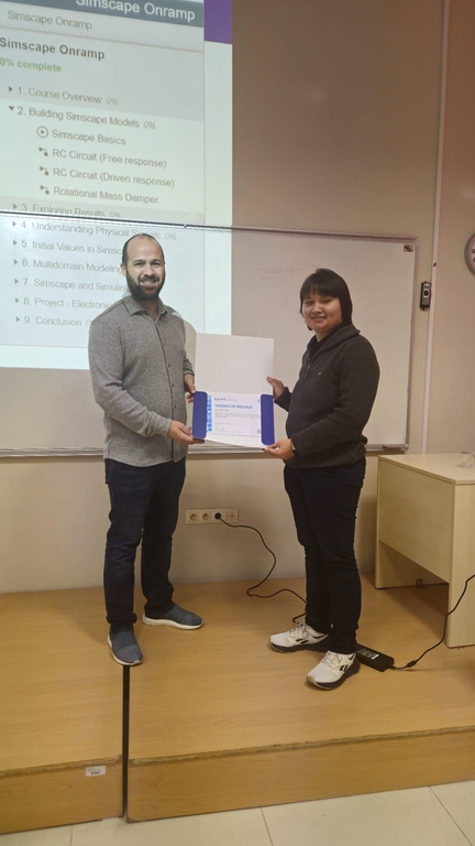 Son oturum da ise Sistem Modelleme ve Kontrol Mühendisi Aylin Edgü tarafından gerçekleştirildi. “MathWorks Ekosisteminde Model Tabanlı Tasarım” başlıklı eğitimde Simulink, Simscape ve Stateflow araçları üzerinden model tabanlı tasarımın mühendislik süreçlerine sağladığı avantajlar uygulamalı olarak anlatıldı. Dinamik sistem modelleme ve karar mantığı tasarımı üzerine örnek çalışmalar yapıldı.